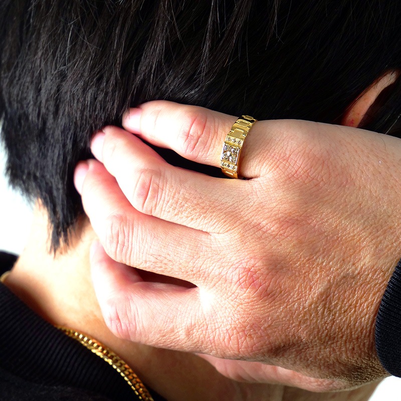 上品な輝きを持つゴールドリングが日常を煌めきを与える。