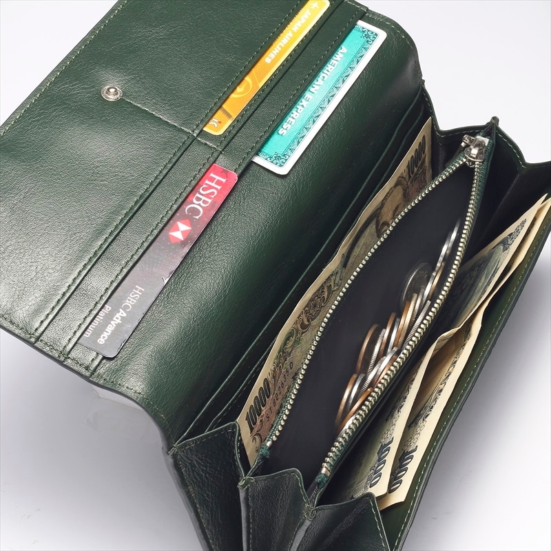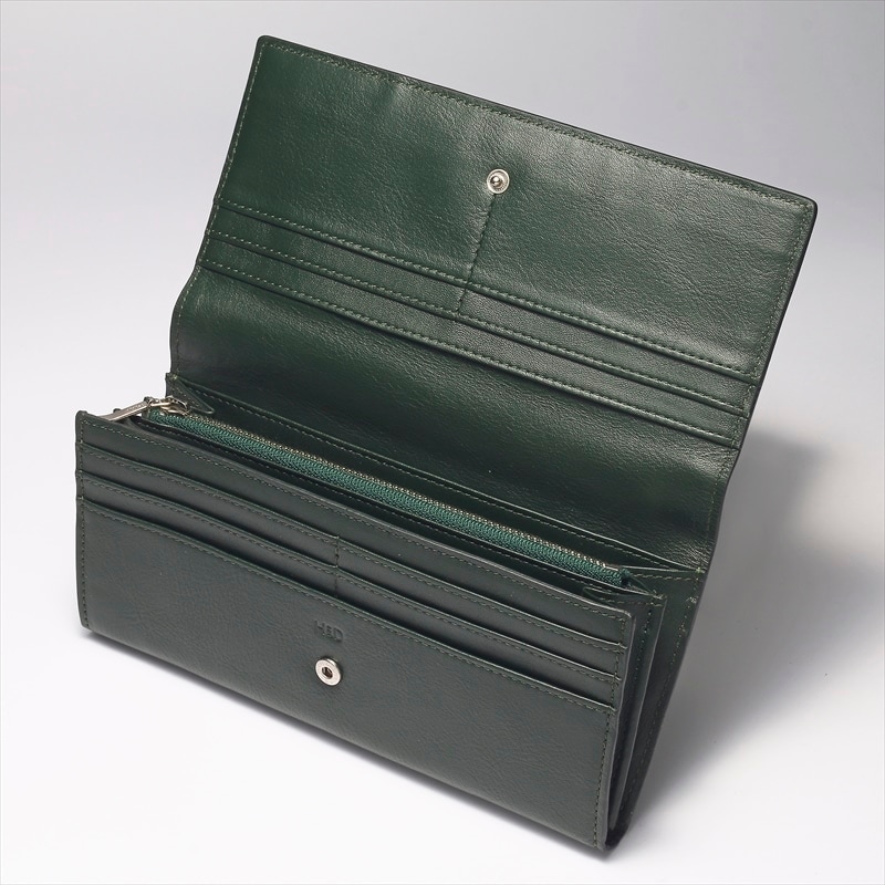 【H&D Leather】 スナップボタン 長財布 HDB-8L グリーン 5564200685