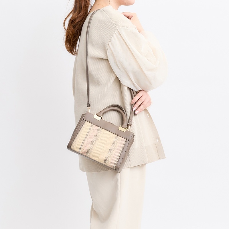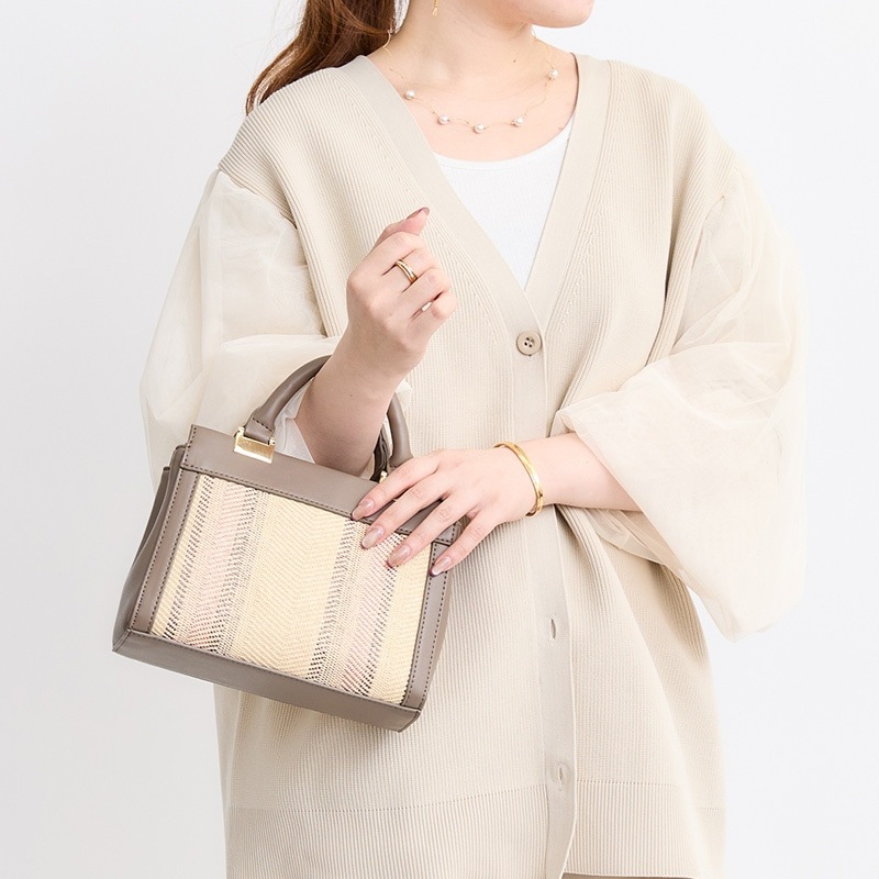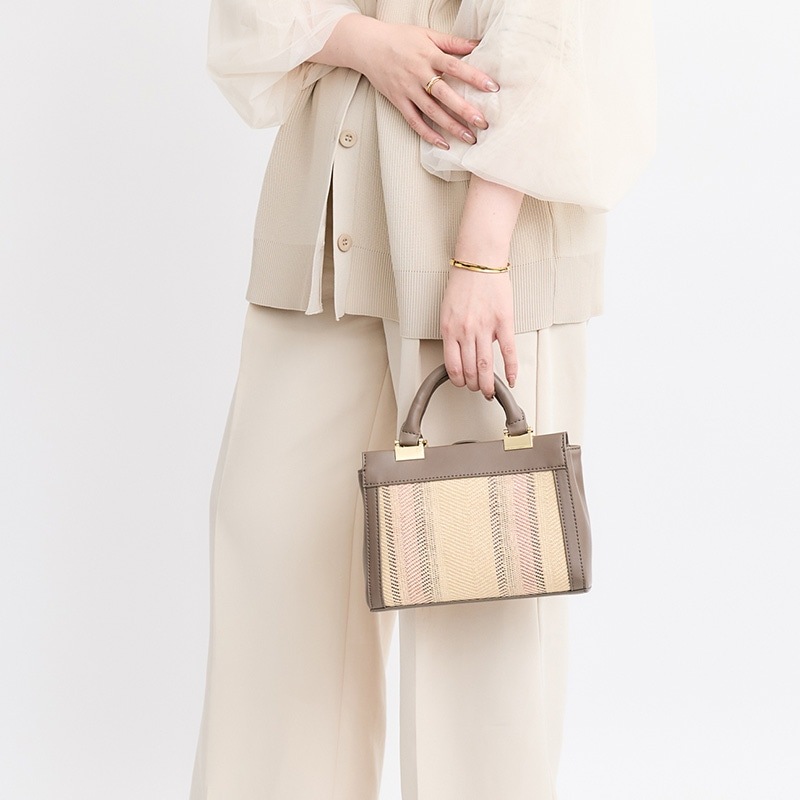 ■おススメポイント:トレンドのスクエア型を意識した、お出かけにぴったりなデザイン。また、シーズン感のある素材を使用しているのでファッション感もプラスしてくれます。