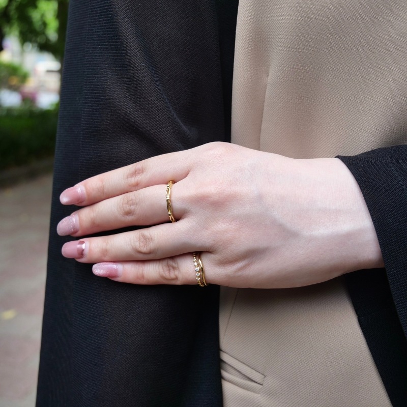 どんな服装にも映え、ダイヤや天然石との重ね付けにも最適。