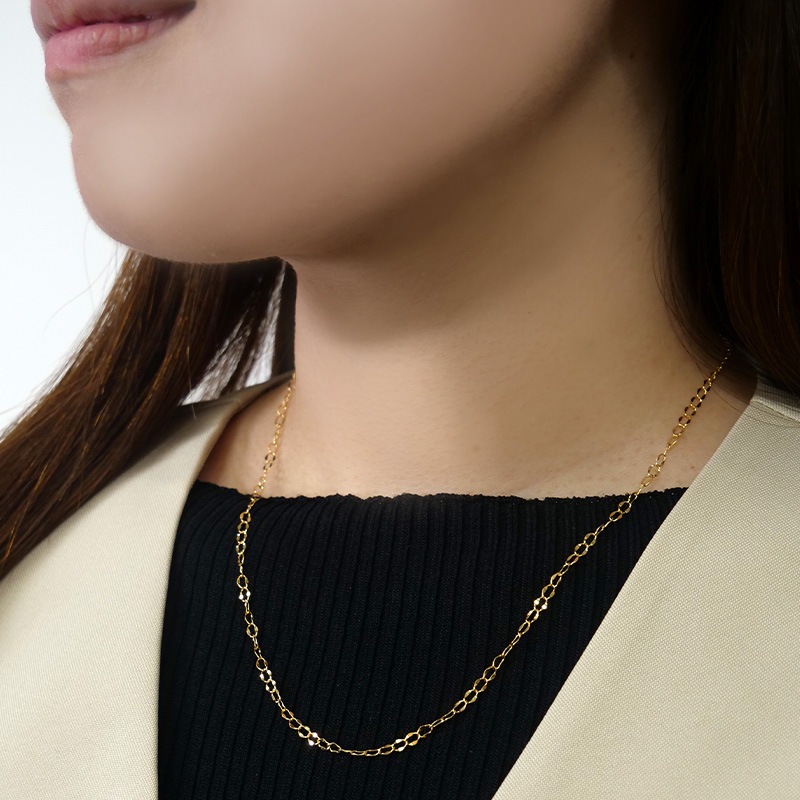 【Gold Jewelry】 デザインチェーン ネックレス シープレスチェーン K18 YG イエローゴールド φ0.4 50cm 1131100336