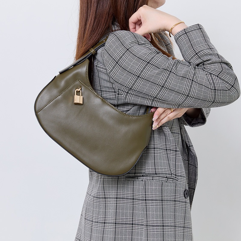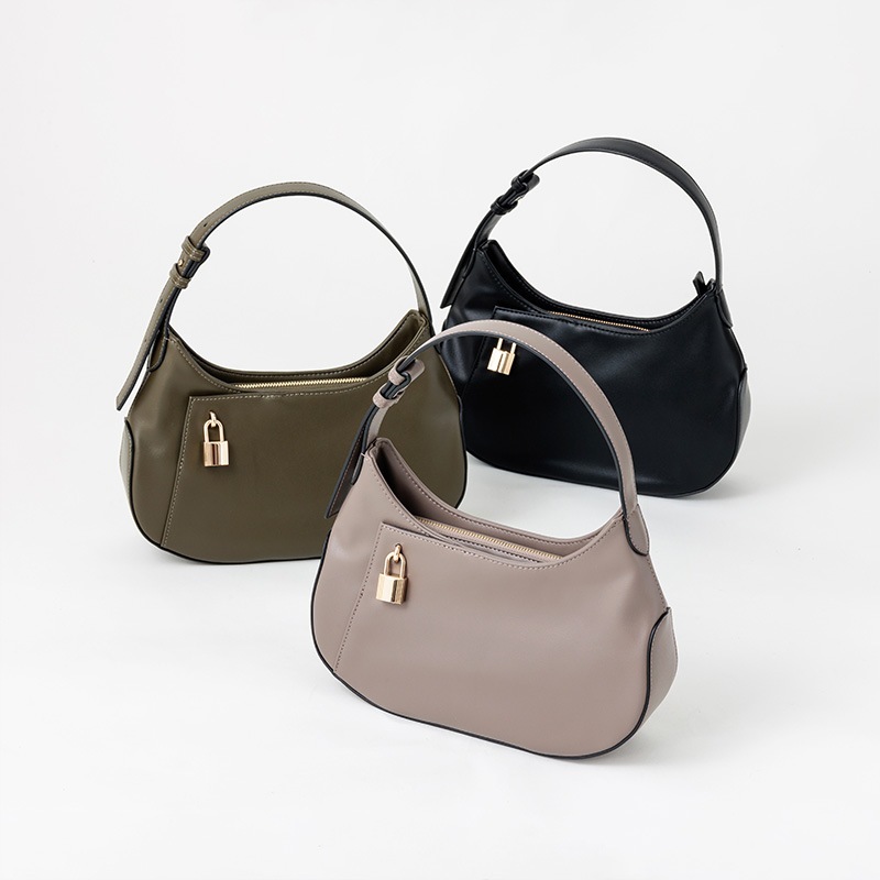 ■おススメポイント:曲線を描く優しいフォルムや鍵モチーフのゴールド金具が目を引くデザイン。あおりポケットがついているので肩にかけながらもサッと荷物が取り出しやすい◎