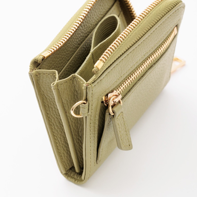 【外側】ファスナー小銭入れ×1、ストラップ×1【内側】カードポケット×3、スマートキーケースポケット×2、取り外し式チェーン×1