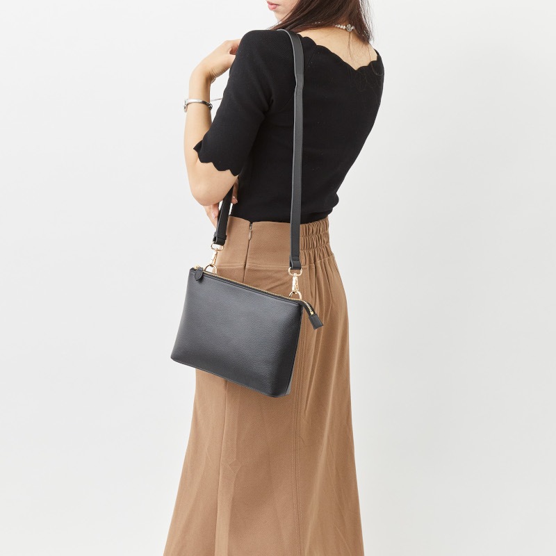 牛本革の質感がさりげなく品の良さを演出するショルダーバッグ。