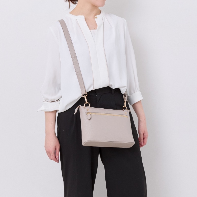 牛本革の質感がさりげなく品の良さを演出するショルダーバッグ。
