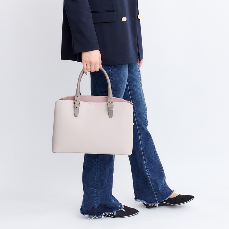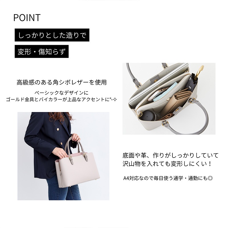 ■おススメポイント:高級感のある角シボレザーを使用しております。ベーシックなデザインながらも、留具やバイカラー配色がアクセントに♪ A4収納にも対応しております。