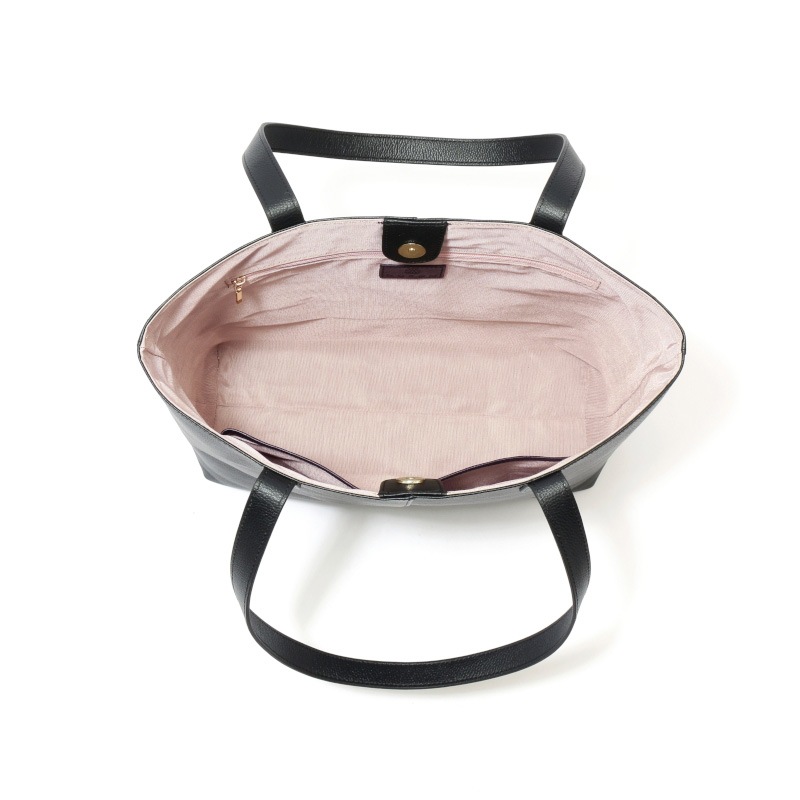 牛本革の質感がさりげなく品の良さを演出するトートバッグ。シボ革の特徴である、高級感やあたたかみが魅力。傷が目立ちにくく、耐久性が高いのもポイント。軽量でマグネット開閉式なので、モノの収納や出し入れもしやすいです。