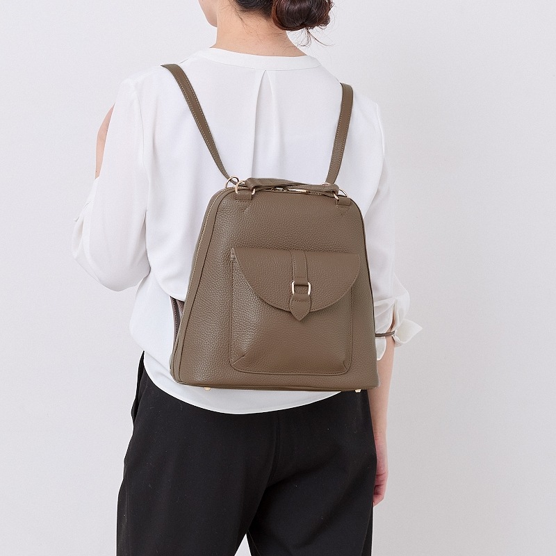 牛本革の質感がさりげなく品の良さを演出する2WAYリュック。