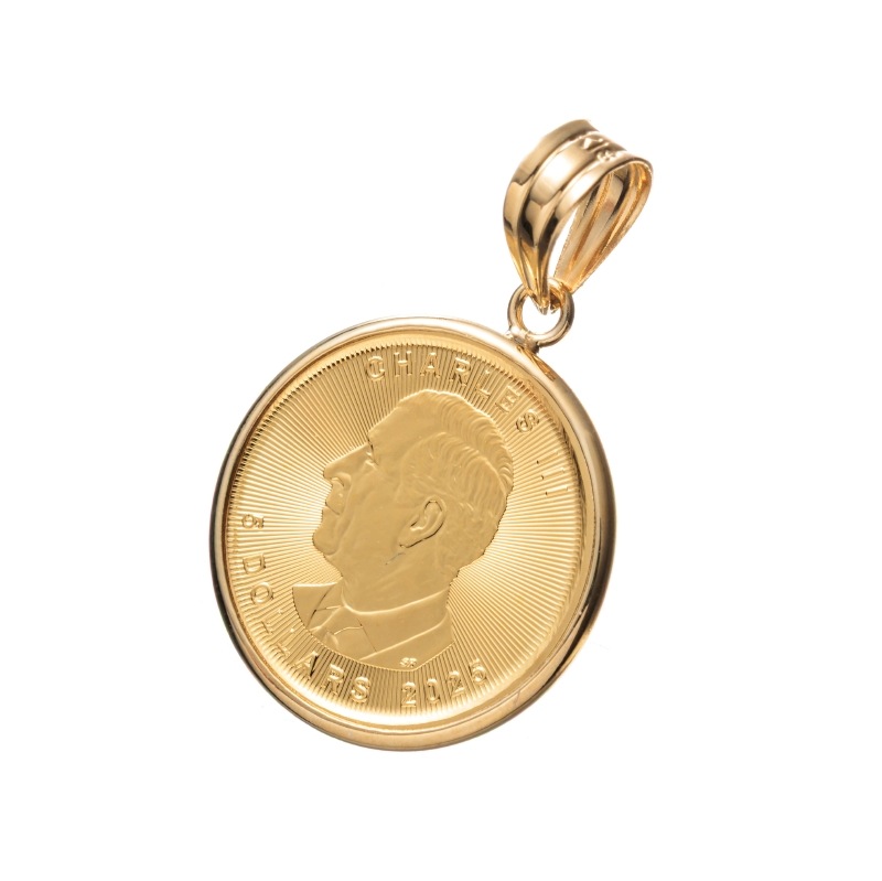 【Gold Jewelry】 K18 K24 YG イエローゴールド メイプルリーフ チャールズ3世 コイン $5 ROYAL CANADIAN MINT ペンダントトップ 1/10oz 1168900220