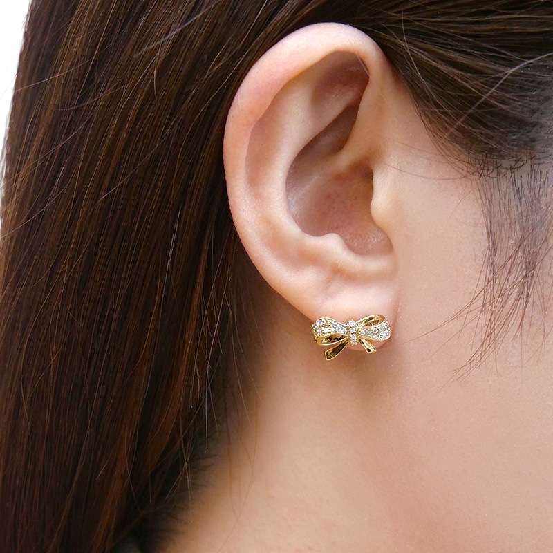 【h&d Jewelry】 Ribbon ピアス SWEET SV925 イエローゴールド CZ 5175600500