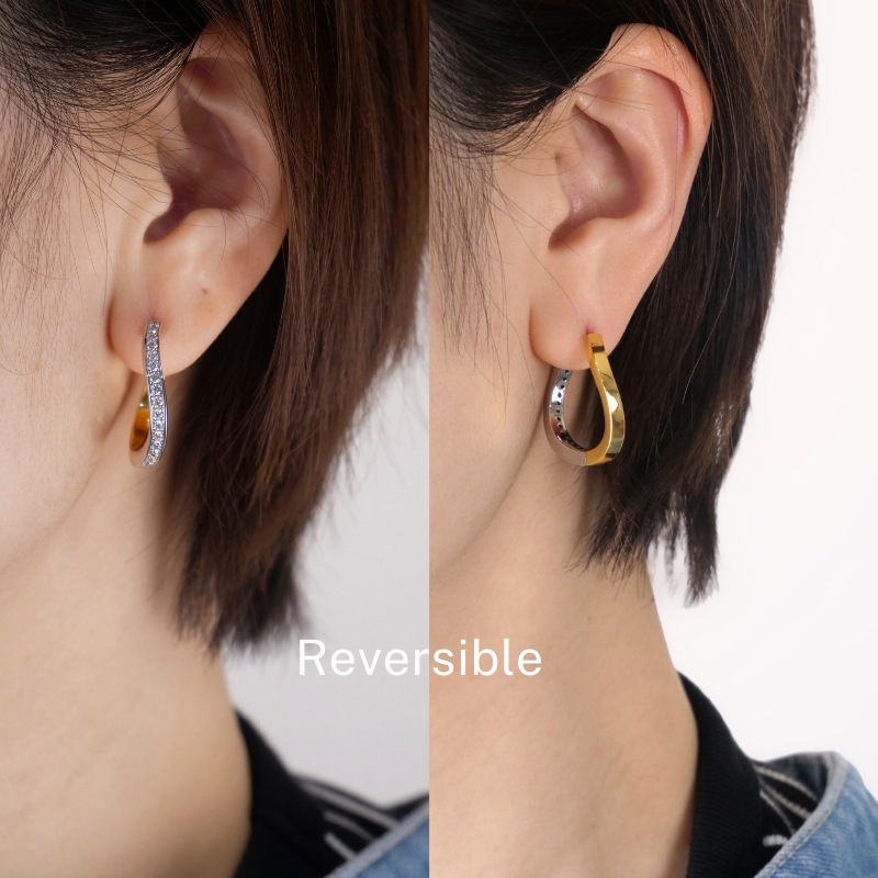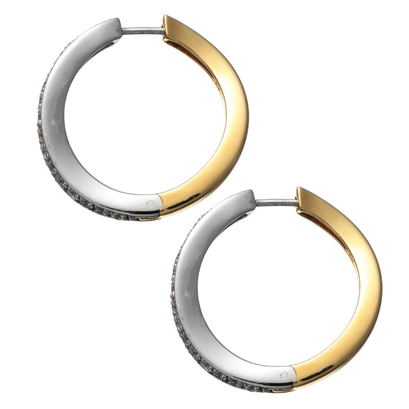 【h&d Jewelry】 フープ ピアス COOL SV925 イエローゴールド シルバー バイカラー CZ 5175600535