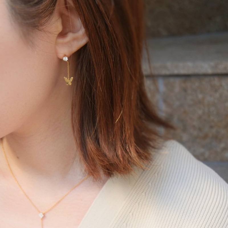 【h&d Jewelry】 Butterfly ピアス SWEET SV925 イエローゴールド CZ 5175600575