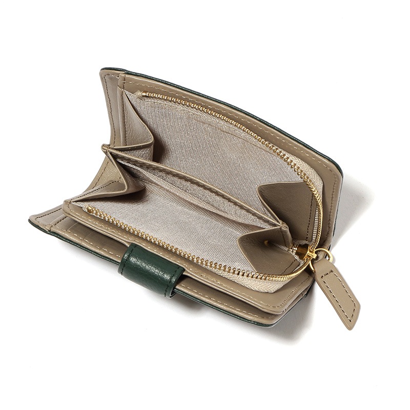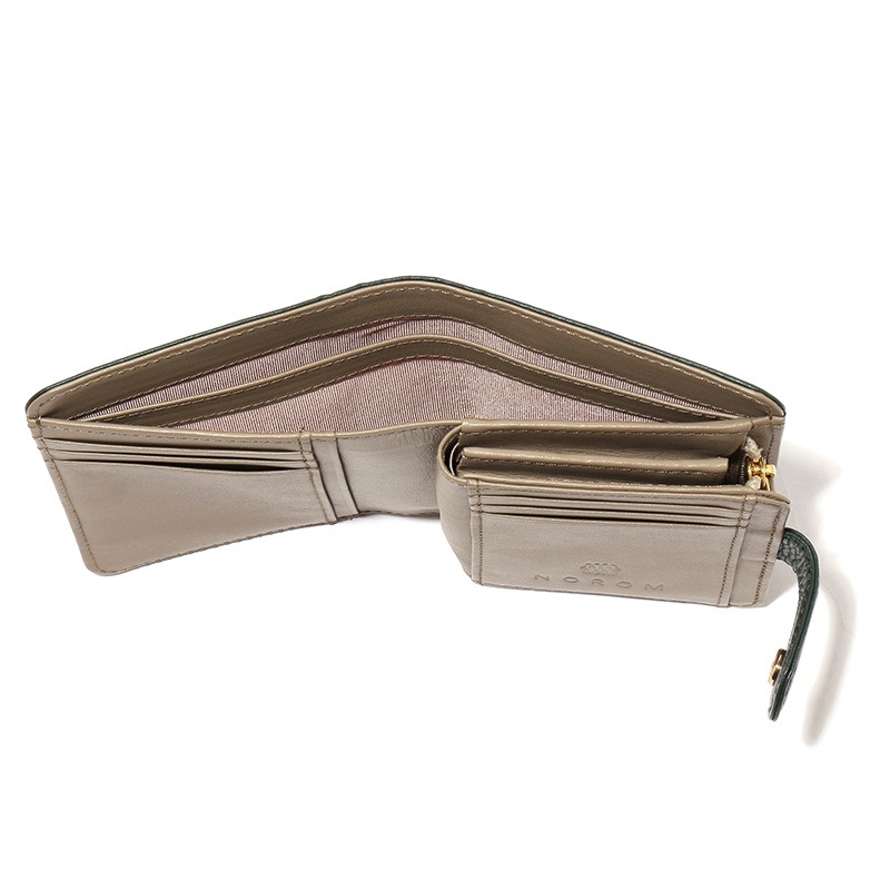 【NOROM Leather】 二つ折財布 HDL-302n グリーン/グレーベージュ 5564200867